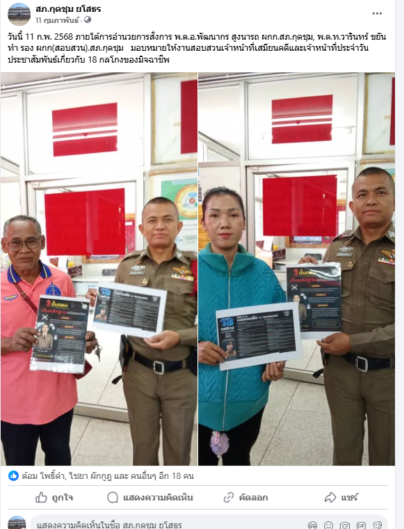 ว.4 ประชาสัมพันธ์ 18 กลโกงของแก็งค์คอลเซนเตอร์ เพื่อมิให้ประชาชนในเขตรับผิดชอบหลงเชื่อ